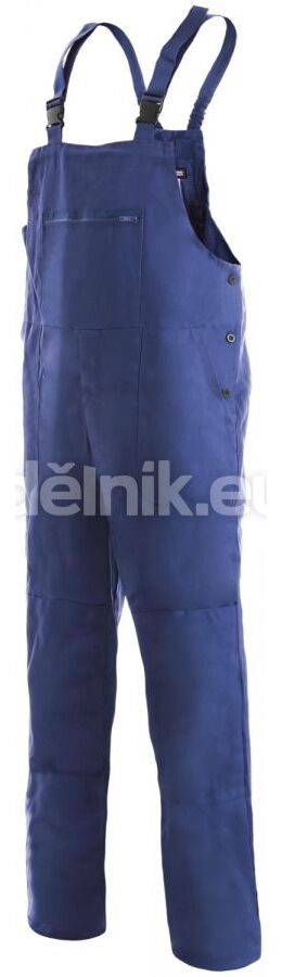 Pánské kalhoty s náprsenkou, zdvojená kolena, náprsní kapsa na zip, boční kapsa na metr, pas v zádní části do gumy.