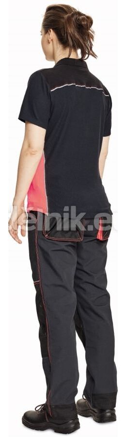 dámská polokošile z bavlněného úpletu v lichotivém projmutém střihu; sedlo v kontrastní černé barvě lemované reflexní paspulkou; dekorativní boční části a prošití v hi-vis barvě; svrchní materiál: 95 % bavlna, 5 % elastan, 200 g/m²