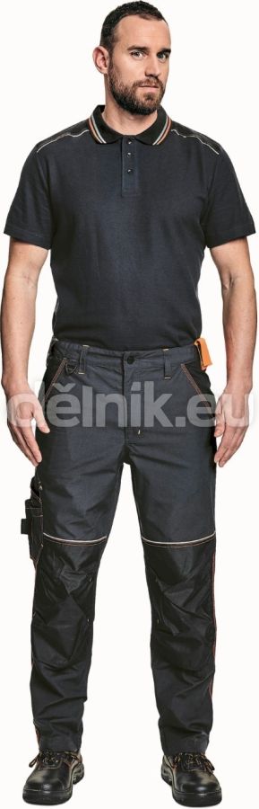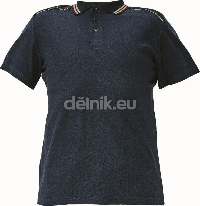 pánská polokošile s krátkým rukávem ze směsi bavlny a polyesteru v úpletu pique - sedlo v kontrastní černé barvě lemované reflexní paspulkou; propínací léga na 3 knoflíky; dekorativní prošití v hi-vis barvě; kontrastní proužek v límci