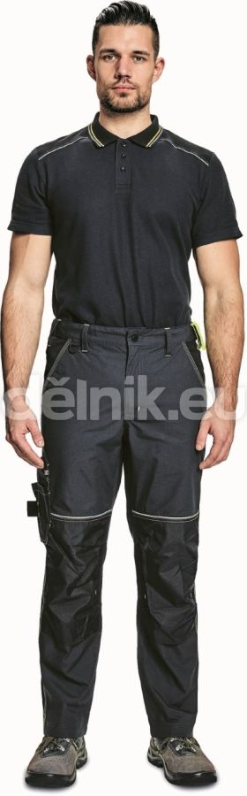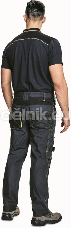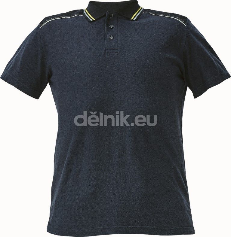 pánská polokošile s krátkým rukávem ze směsi bavlny a polyesteru v úpletu pique - sedlo v kontrastní černé barvě lemované reflexní paspulkou; propínací léga na 3 knoflíky; dekorativní prošití v hi-vis barvě; kontrastní proužek v límci