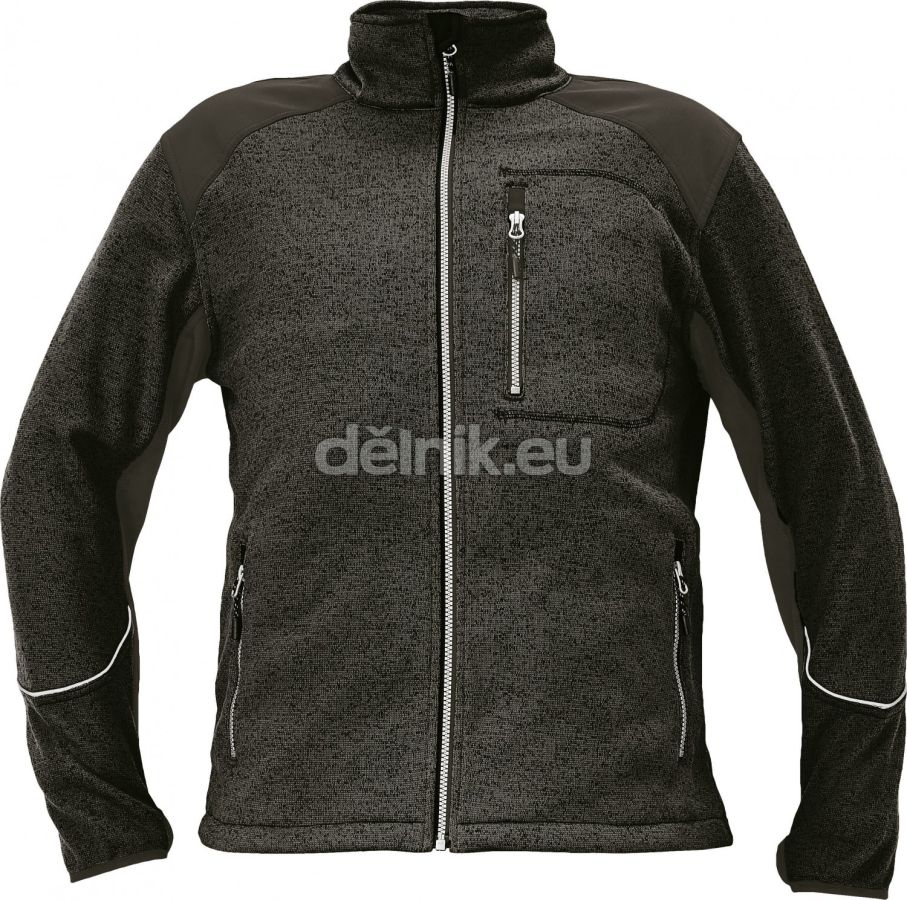 pánský svetr z melírovaného úpletu se zapínáním na zip; zesílená část v oblasti ramen a rukávů softshellovým materiálem; 2 přední kapsy na zip; 1 náprsní kapsa na zip; nastavitelná šíře spodního lemu; očko na palec na konci rukávu; svrchní materiál: 100 % polyester, 265 g/m²