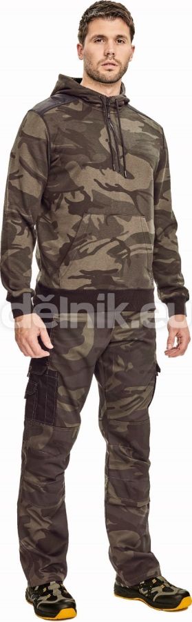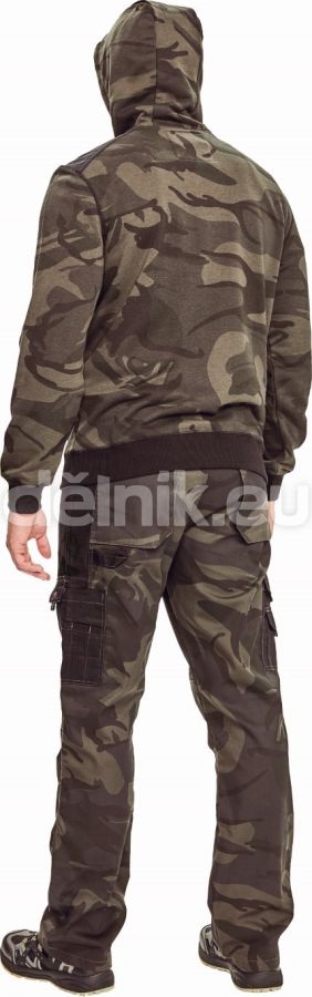 pánská polopropínací bunda s kapucí a klokaní kapsou; zesílené části v oblasti ramen; elastické náplety na rukávech a spodním obvodu; oblíbený a praktický maskáčový vzor; svrchní materiál: 65 % polyester, 35 % bavlna, 340 g/m²