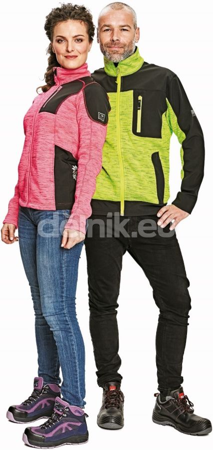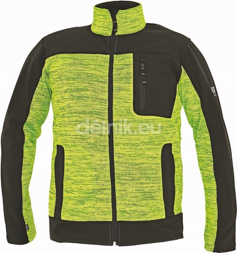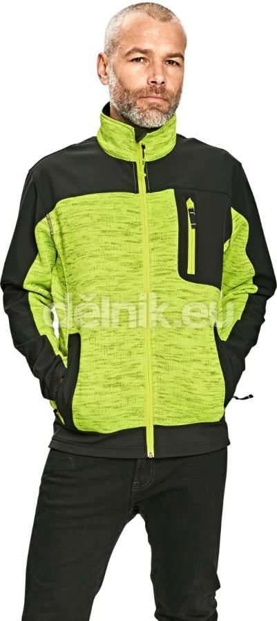 pánský celopropínací svetr z pleteného materiálu mellange v kombinaci se softshellem, uvnitř počesaný; náprsní kapsa a postranní kapsy na zip; reflektivní potisk na rukávu a zevnitř légy; atraktivní barevné provedení; svrchní materiál: 96 % polyester, 4 % elastan, 380 g/m²