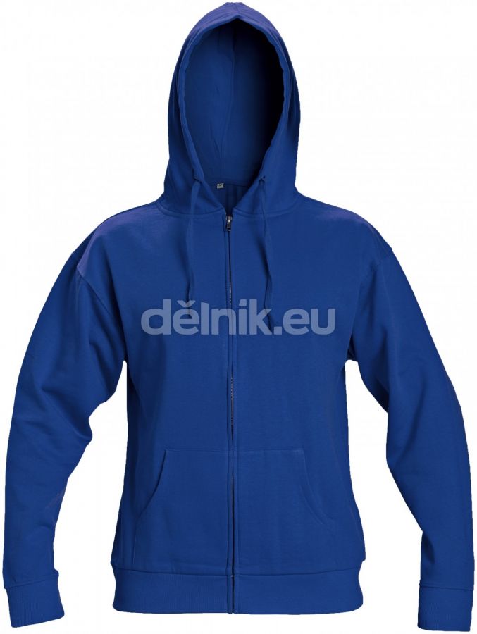 mikina s kapucí • zatahovatelná kapuce na kulaté tkanice • celopropínací s kovovým zipem • vnitřní strana počesaná • spodní lem a manžety rukávů z žebrového úpletu s příměsím elastanu • 80% bavlna 20% polyester • 290 g/m2
