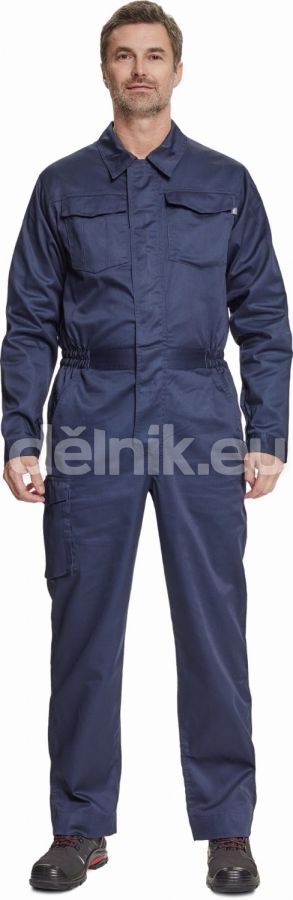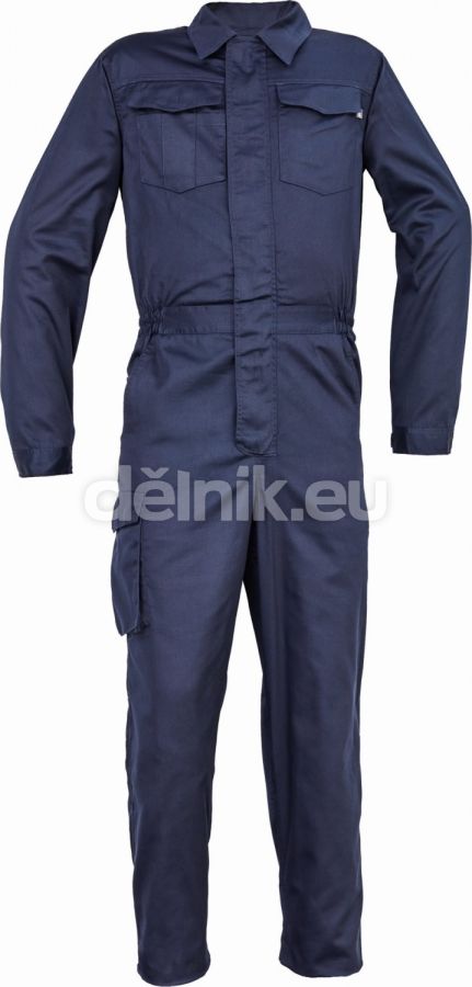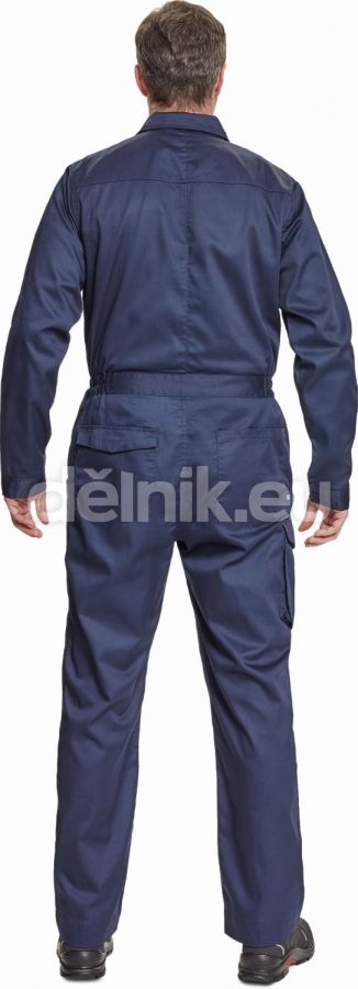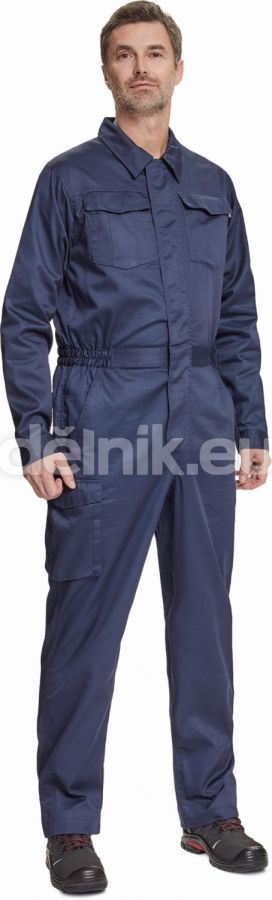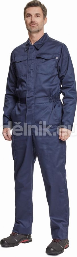 pánský lehký pracovní overal s elastickým pasem; zapínání na zip kryté légou na suchý zip; 2 postranní kapsy, 1 kapsička na mince; 1 multifunkční stehenní kapsa, 2 náprsní kapsy s klopou; 2 zadní kapsy; nastavitelná délka nohavic; svrchní materiál: 65 % polyester, 35 % bavlna, 195 g/m²