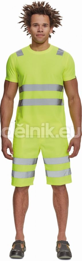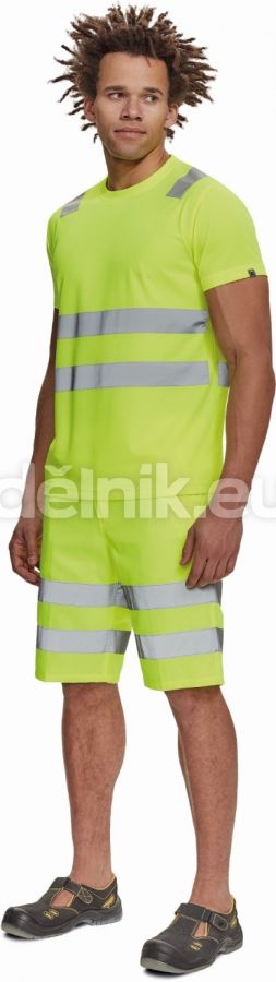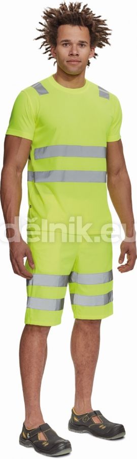 pánské lehké full HI-VIS pracovní šortky s reflexními pruhy, elastický pas; 2 postranní kapsy, 1 kapsička na mince; 2 zadní kapsy; svrchní materiál: 50 % bavlna, 50 % polyester, 200 g/m²