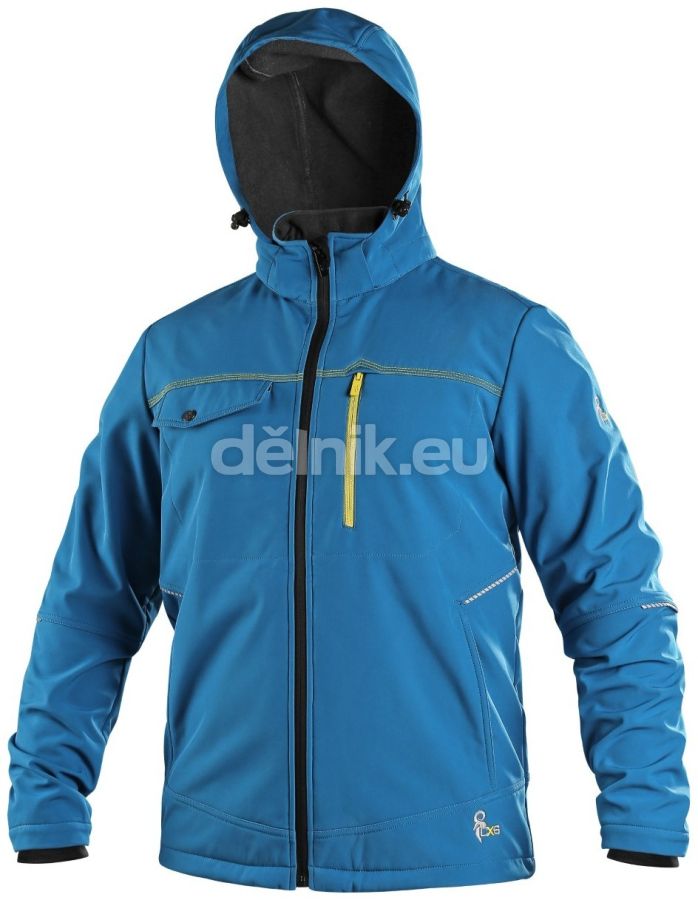 Pánská softshellová bunda, odolná proti vodě a větru, odepínací kapuce, větrání v podpaží, náprsní kapsy - na druk a zip, boční kapsy na zip, vnitřní manžety v rukávech, stahování v dolním okraji, reflexní doplňky, vnitřní náprsní kapsa, TPU membrána. Odolnost materiálu proti průniku vody 5 000 mm mimo oblast švů, paropropustnost 5 000 g/m2/24 h. Podšívka kombinovaná s fleecem. Svrchní materiál 96% polyester, 4% elastan. Podšívka 100% polyester.