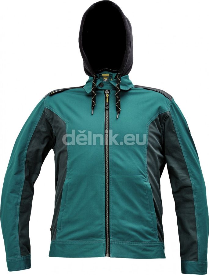 pánská pracovní bunda; elastický inovativní materiál TRIFIBETEX; ergonomický střih; odnímatelná kapuce; zesílená oblast ramen z materiálu Oxford; 2 boční kapsy; 1 vnitřní kapsa na telefon; reflektivní prvky v barevném odstínu; svrchní materiál: 62 % bavlna, 35 % polyester, 3 % elastan, 260 g/m², TRIFIBETEX; svrchní zesílená vrstva: 100 % polyester
