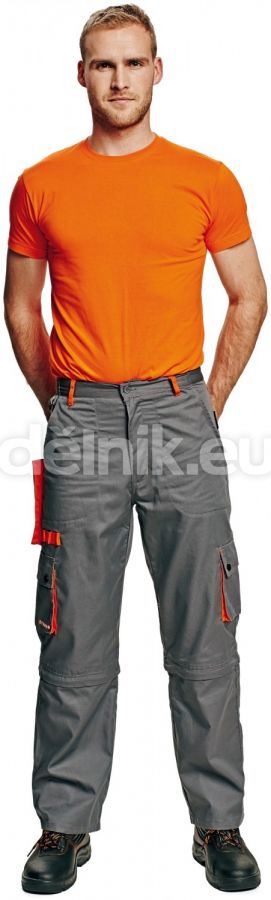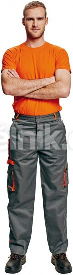 DESMAN pracovní kalhoty do pasu - Montérkové kalhoty do pasu, 65% polyester / 35% bavlna, 235 g/m2, kombinace šedá / oranžová, velikosti 48-62