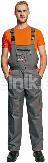 DESMAN pracovní kalhoty lacl - Montérkové kalhoty s laclem moderního střihu, 65% polyester / 35% bavlna, 235 g/m2, kombinace šedá / oranžová, velikosti 48-64