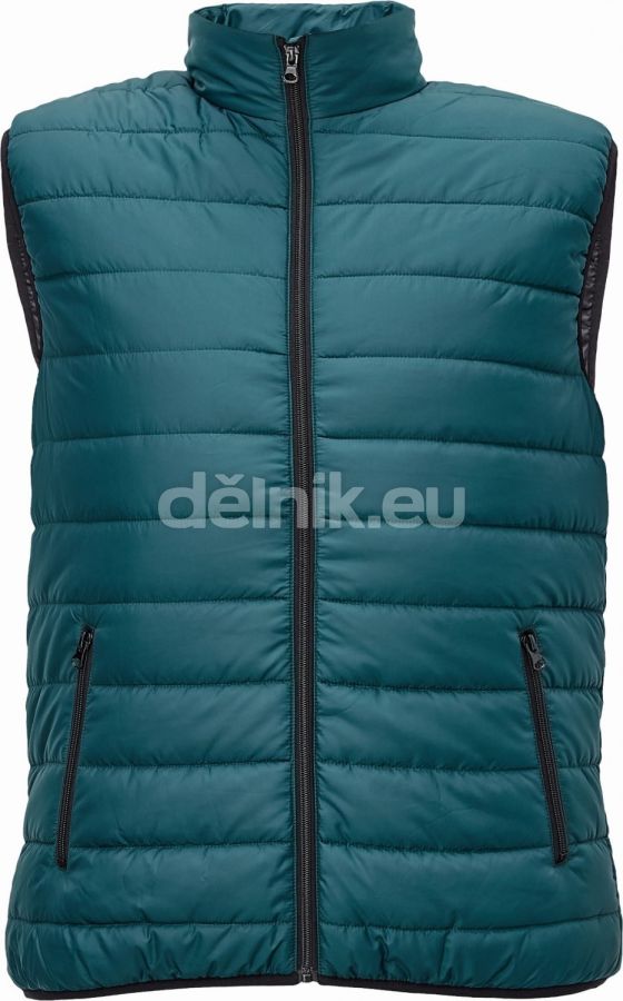 pánská zateplená vesta; elastický pas; zapínání na zip; 2 boční kapsy na zip; svrchní materiál: 100 % polyester, taffeta; vnitřní podšívka: 100 % polyester, taffeta; vnitřní izolace: 100 % polyester, 200 g/m²
