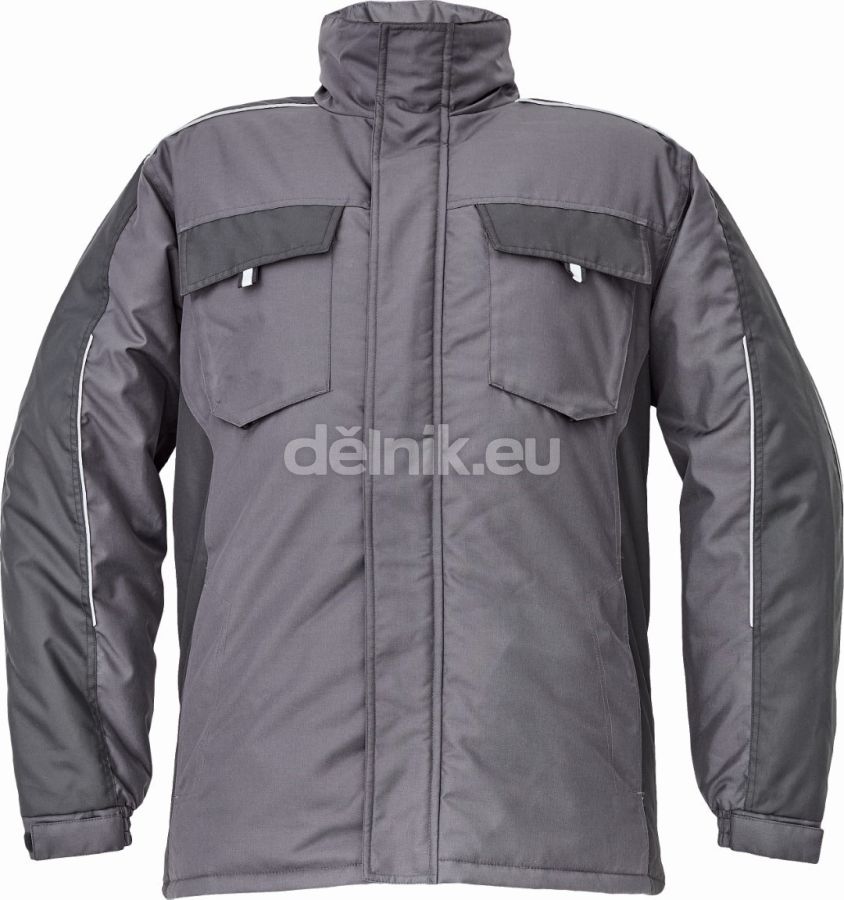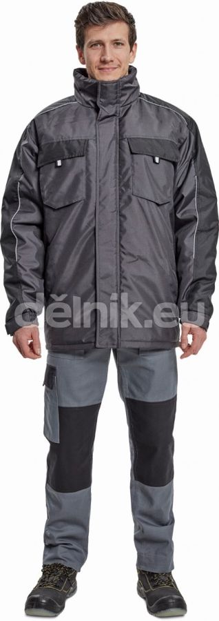 pánská zimní bunda; zapínání na zip kryté légou na suchý zip; 2 boční kapsy, 2 náprsní kapsy na suchý zip; 1 vnitřní kapsa na mobilní telefon; elastické manžety rukávů se suchým zipem; reflexní prvky; svrchní materiál: 100 % polyester; povrstvení: polyuretan; vnitřní podšívka: 100 % polyester, taffeta; vnitřní izolace: 100 % polyester, 200 g/m²