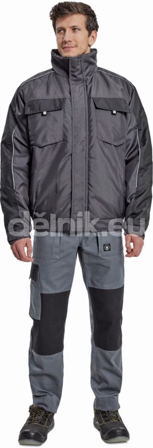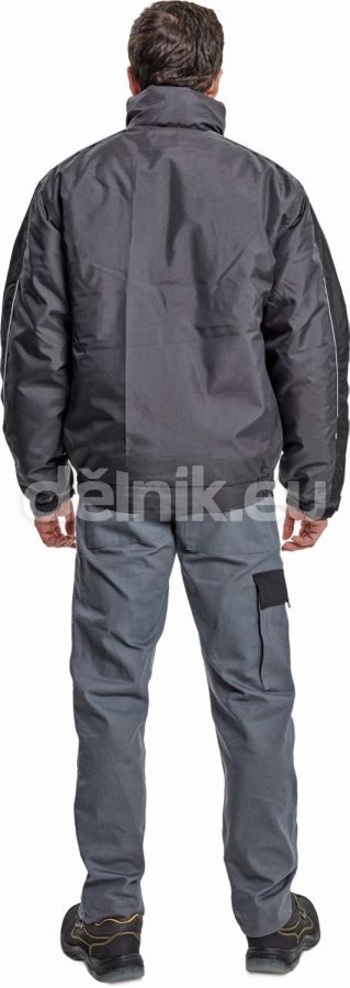 pánská zimní bunda; zapínání na zip kryté légou na suchý zip; 2 boční kapsy, 2 náprsní kapsy na suchý zip; 1 vnitřní kapsa na mobilní telefon; elastické manžety rukávů se suchým zipem; reflexní prvky; svrchní materiál: 100 % polyester; povrstvení: polyuretan; vnitřní podšívka: 100 % polyester, taffeta; vnitřní izolace: 100 % polyester, 200 g/m²