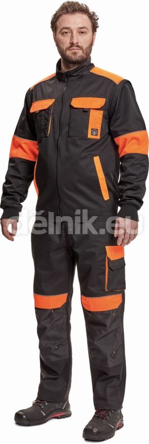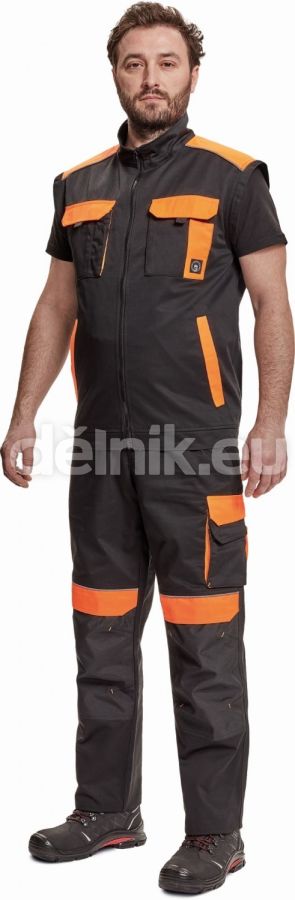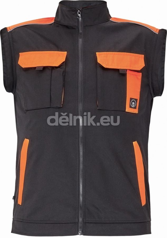 pánská pracovní bunda se zapínáním na zip; odepínatelné rukávy; 2 přední kapsy, 2 náprsní kapsy; zesílení namáhaných míst loktů a ramen; reflexní paspulky; pružné náplety manžet rukávů a elastický spodní obvod pasu; materiál: 65 % polyester, 35 % bavlna, 250 g/m²