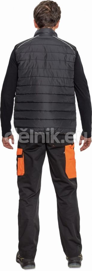 pánská zateplená vesta; elastický pas; zapínání na zip; 2 boční kapsy na zip; svrchní materiál: 100 % polyester, 63 g/m², taffeta; vnitřní podšívka: 100 % polyester, taffeta; vnitřní izolace: 100 % polyester, 200 g/m²