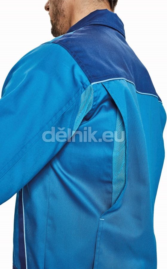 » pánská pracovní bunda ze směsového materiálu bavlny / polyester twill » dekorativní paspulky v kontrastní barvě » lehce odvětratelná díky částem ze síťoviny » veškeré zapínání kryté légou » 2 postranní kapsy a 1 náprsní kapsa uvnitř s "D" kroužkem » vhodná pro industriální praní