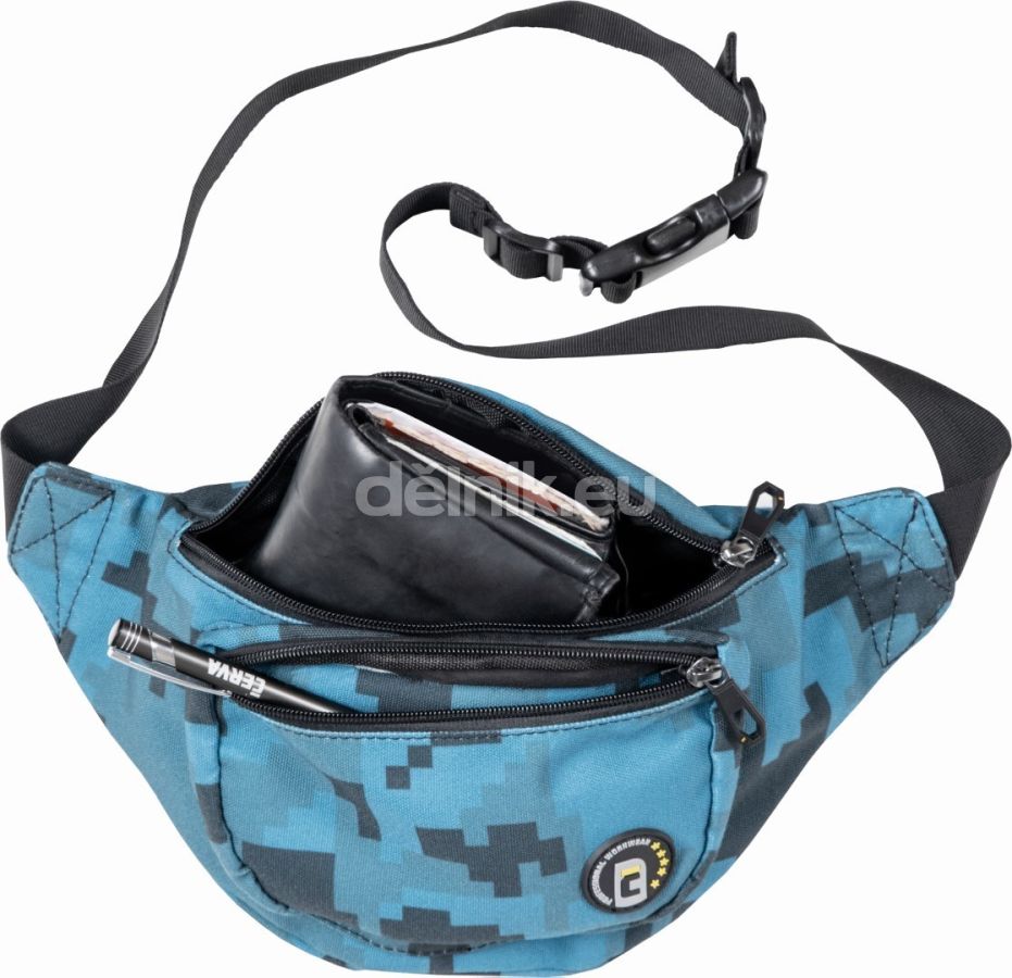 multifukční tří prostorová ledvinka v moderním maskáčovém vzoru, 1 vnitřní kapsa na zip, pasový popruh s nastavením délky a upínáním na sponu; svrchní materiál: 100 % polyester