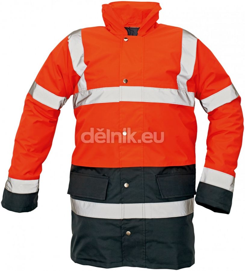 SEFTON pracovní ochranná bunda reflexní červená. Nepromokavá zateplená bunda, polyester s paropropustnou vrstvou polyuretanu, kapuce v límci, výstražný oděv dle EN471, ochrana proti dešti a povětrnostním vlivům, velikosti M-XXXL