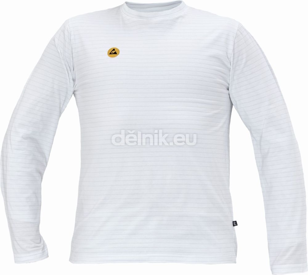 ESD tričko s dlouhým rukávem z bavlněného jednoduchého žerzeje pleteného s antistatickým vláknem; zajišťuje ochranu elektronických součástek před elektrostatickými jevy; univerzální střih; svrchní materiál: 96 % bavlna, 4 % antistatické vlákno, 170 g/m²