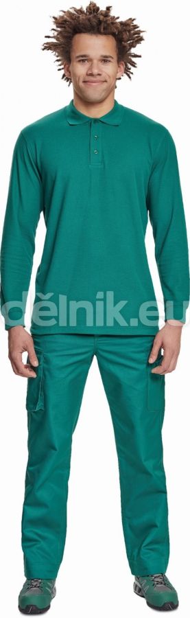 pánská polokošile s dlouhými rukávy; zapínání na 3 knoflíčky; límec a rukávy zakončené žebrovým úpletem; svrchní materiál: 60 % bavlna, 40 % polyester, 180 g/m²