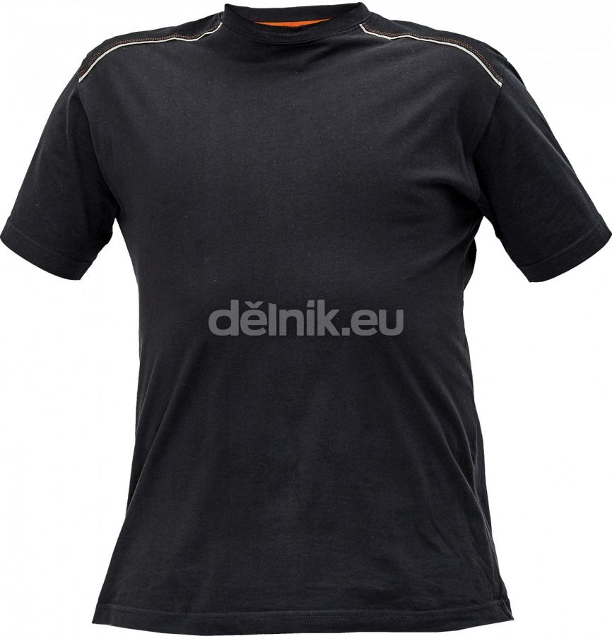 • pánské tričko z bavlněného úpletu • sedlo v kontrastní černé barvě lemované reflexní paspulkou • dekorativní prošití k hi-vis barvách