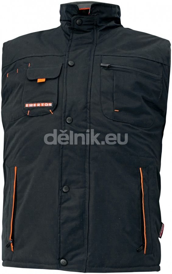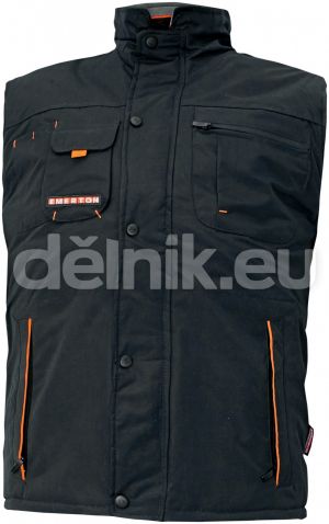 EMERTON pracovní vesta zateplená - Zateplená vesta, 100% polyesterové mikrovlákno povrstvené PVC, fl eece límec, polyesterová podšívka se zipem přizpůsobená pro strojní vyšívání, velikosti S-XXXL
