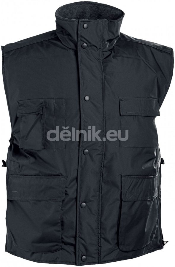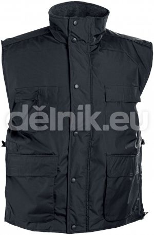 BEAVER pracovní vesta černá - Nepromokavá vesta zateplená polyesterovou střiží, 100% polyester povrstvený PVC, polyesterová podšívka se zipem přizpůsobená pro strojní vyšívání, velikosti S - XXXL