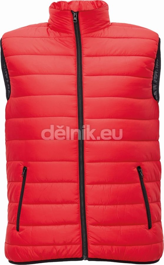 pánská zateplená vesta; elastický pas; zapínání na zip; 2 boční kapsy na zip; svrchní materiál: 100 % polyester, taffeta; vnitřní podšívka: 100 % polyester, taffeta; vnitřní izolace: 100 % polyester, 200 g/m²