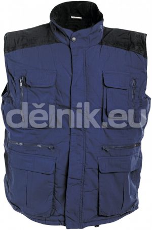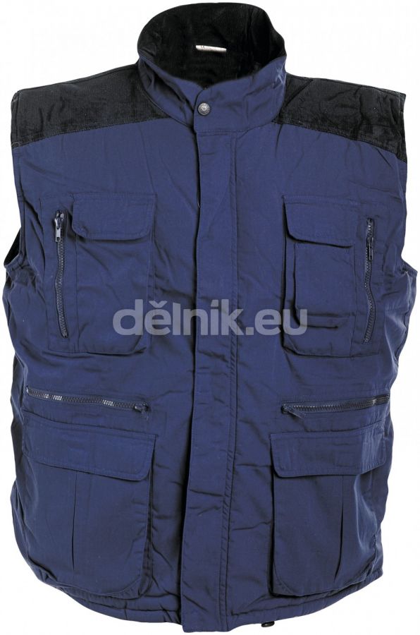 DAVIDA pracovní vesta modrá - Zateplená vesta s manšestrovými nárameníky, polyester / bavlna, podšívka z nylonu, zateplení z polyesteru, velikosti M - XXXL