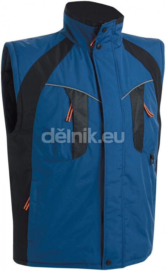 NYALA pracovní vesta modrá - Zateplená nepromokavá vesta,100% polyester povrstvený PVC, zateplení a podšívka polyester, vnitřní kapsa na mobil, velikosti S - XXXL