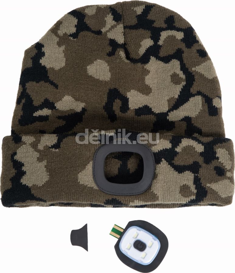 pletená čepice s integrovanou LED lampou; 3 funkce svícení; svítivost 150 lm; LED lampu lze vyjmout a dobít přes USB konektor; nabíjecí výkon: 0,5W; nabíjecí napětí: 5V; nabíjecí proud: 200 mAh; jmenovitý výkon: 1W; svrchní materiál: 100 % akryl
