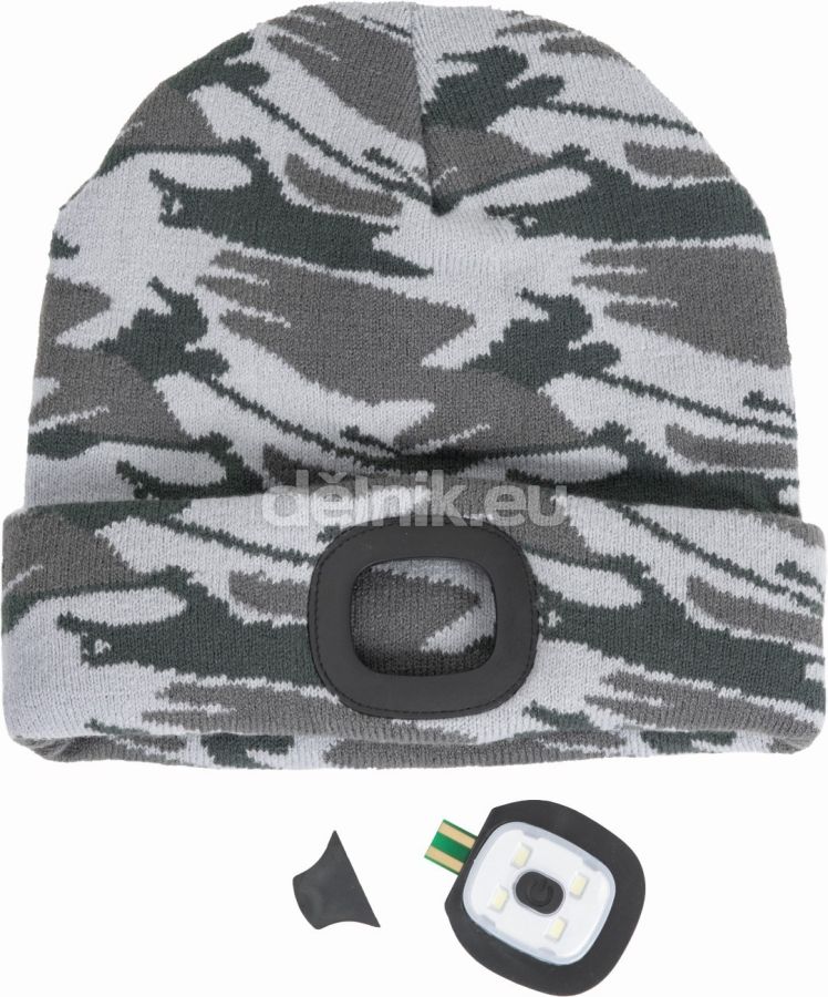 pletená čepice s integrovanou LED lampou; 3 funkce svícení; svítivost 150 lm; LED lampu lze vyjmout a dobít přes USB konektor; nabíjecí výkon: 0,5W; nabíjecí napětí: 5V; nabíjecí proud: 200 mAh; jmenovitý výkon: 1W; svrchní materiál: 100 % akryl