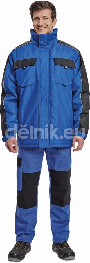 pánská zimní bunda; zapínání na zip kryté légou na suchý zip; 2 boční kapsy, 2 náprsní kapsy na suchý zip; 1 vnitřní kapsa na mobilní telefon; elastické manžety rukávů se suchým zipem; reflexní prvky; svrchní materiál: 100 % polyester; povrstvení: polyuretan; vnitřní podšívka: 100 % polyester, taffeta; vnitřní izolace: 100 % polyester, 200 g/m²