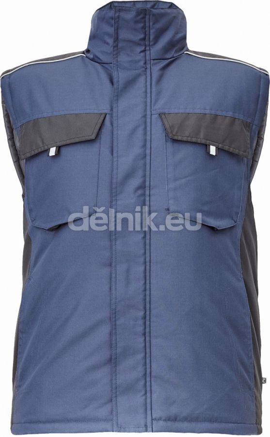 pánská zimní vesta; zapínání na zip kryté légou na suchý zip; 2 boční kapsy, 2 náprsní kapsy na suchý zip; 1 vnitřní kapsa na mobilní telefon; reflexní prvky; svrchní materiál: 100 % polyester; povrstvení: polyuretan; vnitřní podšívka: 100 % polyester, taffeta; vnitřní izolace: 100 % polyester, 200 g/m²
