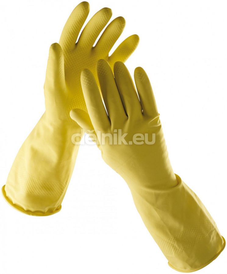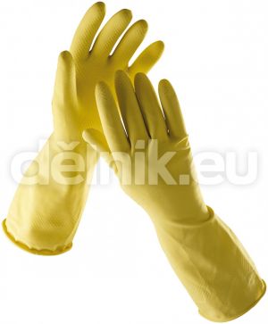 STARLING pracovní rukavice pro úklid - latexové - Latexové rukavice pro domácnost, velurová úprava vnitřního povrchu, protiskluzové struktury na dlani a prstech, barva žlutá, velikosti 7 - 10