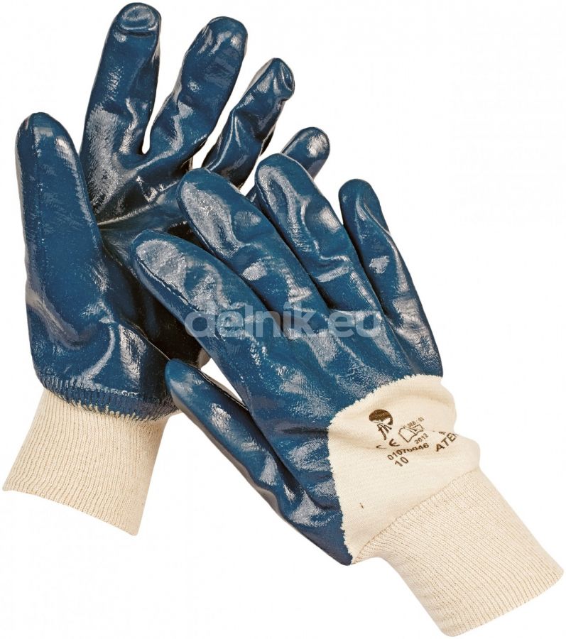 ATER FH pracovní rukavice polomáčené nitril - Šitý bavlněný úplet, polomáčený v nitrilu, pletená manžeta, vysoce odolné, určené pro práci v těžkých podmínkách, velikosti 8 - 11