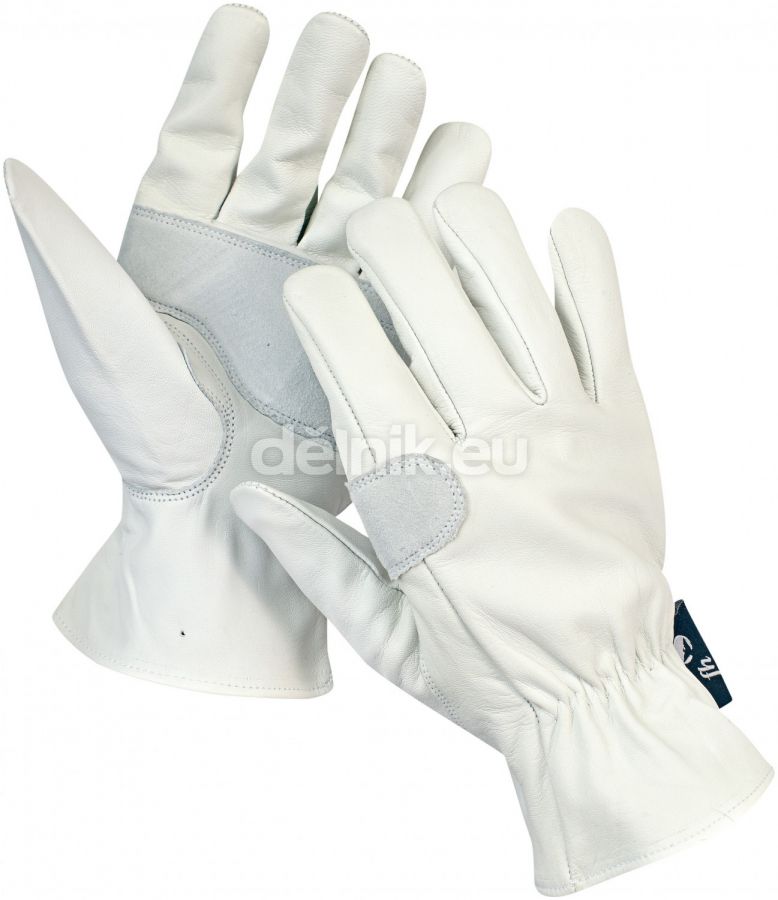 Celokožené rukavice odolné mechanickým rizikům ze silné kozinky a pěnovým vystužením v dlani. Barva: šedá Velikost: 8-10