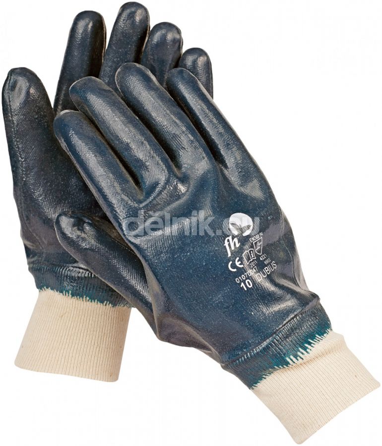DUBIUS FH pracovní rukavice celomáčené nitril - Šitý bavlněný úplet, celomáčený v nitrilu, pletená manžeta, vysoce odolné, určené pro práci v těžkých podmínkách, velikosti 9 - 11