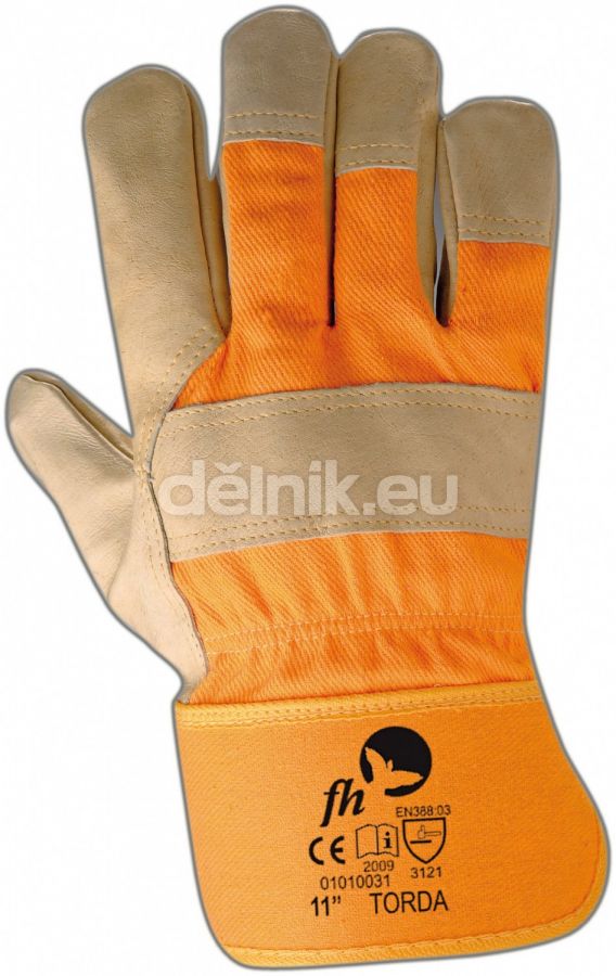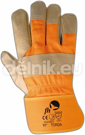 TORDA FH pracovní rukavice kombinované - Dlaň a prsty z jemné lícové kůže, hřbet z kvalitní bavlny, bez podšívky, velikost 11