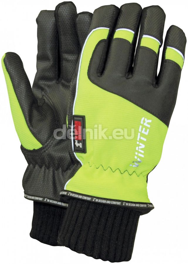 Reflexní doplňky. Pružná peltená manžeta. Dlaň a krytí palců reliéfním PU pro lepší protiskluzové vlastnosti. Podšívka 100% Thinsulate 40g.