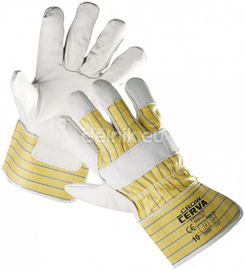 CROW pracovní rukavice kombinované - dlaň z jemné lícové hověziny, hřbet a manžeta z pruhované bavlny, podšívka ve dlani, velikost 10,5