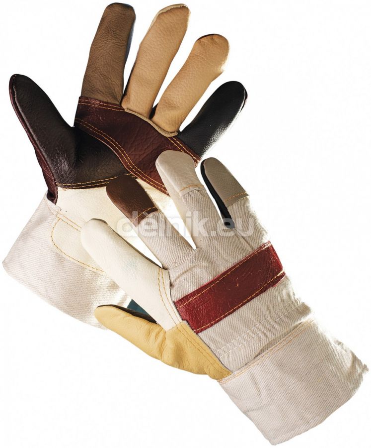 FIREFINCH pracovní rukavice zimní kombinované - dlaň z různobarevné lícové nábytkové hověziny, hřbet a manžeta z bílé bavlněné tkaniny, teplá podšívka, velikost 11
