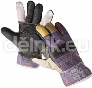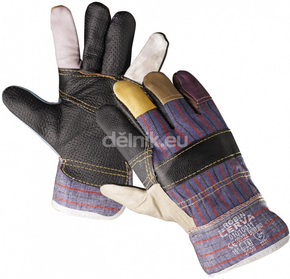 ROBIN pracovní rukavice kombinované - dlaň z různobarevné lícové nábytkové hověziny, hřbet a manžeta z pruhované bavlněné tkaniny, podšívka ve dlani, velikost 10,5
