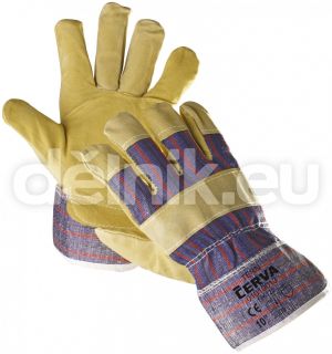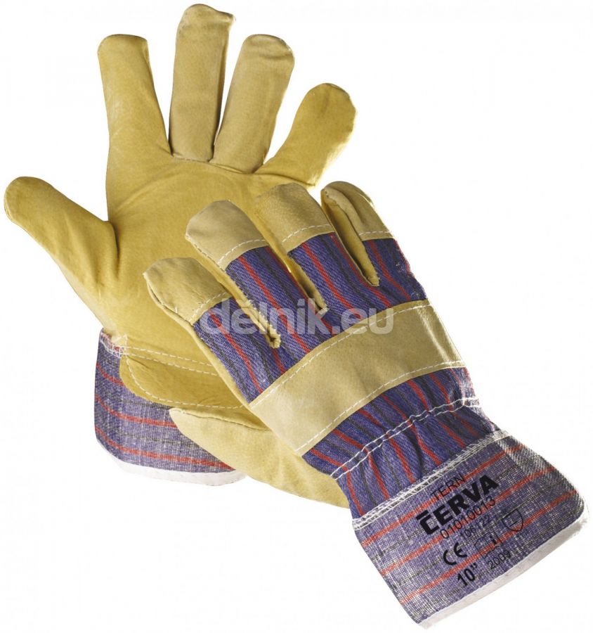 TERN pracovní rukavice kombinované - dlaň z kvalitní žluté hovězí štípenky, hřbet a manžeta z pruhované bavlněné tkaniny, podšívka ve dlani, tkaninou na hřbetu, velikosti10,5