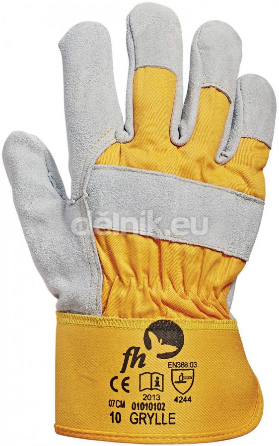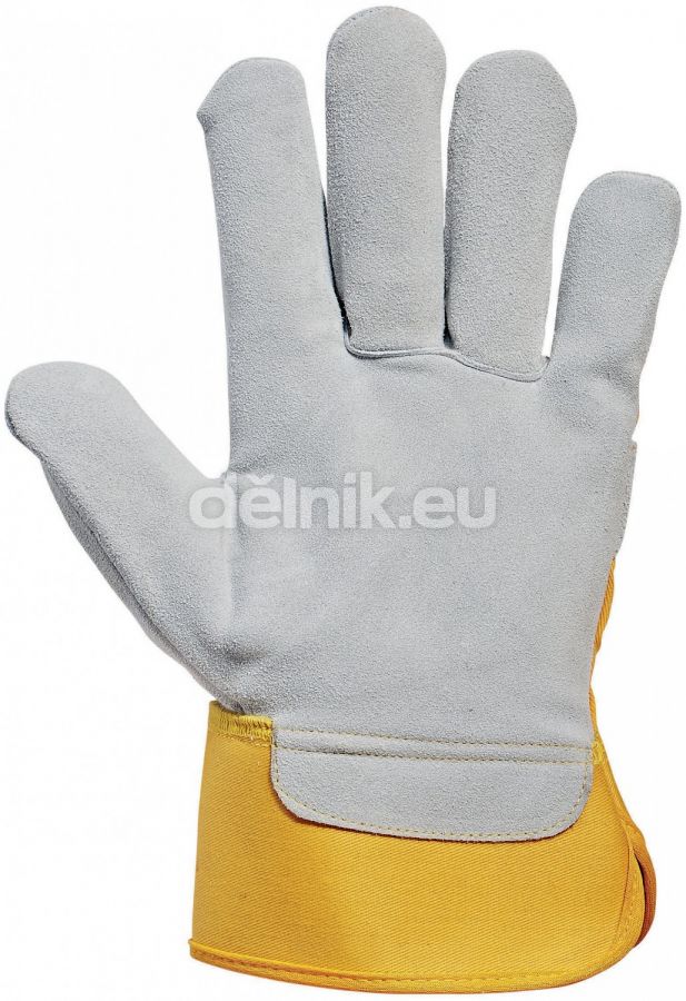 Kombinovaná rukavice z hovězí štípenky a bavlněné tkaniny.