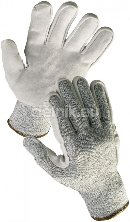 CROPPER MASTER pracovní rukavice chmická vlákna/kůže - Bezešvý úplet z vysoce odolných vláken, dlaň a prsty zesílené kvalitní hovězí štípenkou, boční ochrana prstů, odolnost proti prořezu 5, velikosti 7- 10