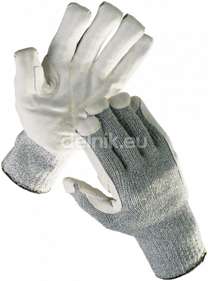 CROPPER STRONG pracovní rukavice ch.vlákna/kůže - Bezešvý úplet z vysoce odolných vláken, dlaň a prsty zesílené kvalitní hovězí štípenkou, překryté konce prstů, zdvojená vrstva kůže mezi palcem a ukazovákem, odolnost proti prořezu 5, velikosti 7- 10