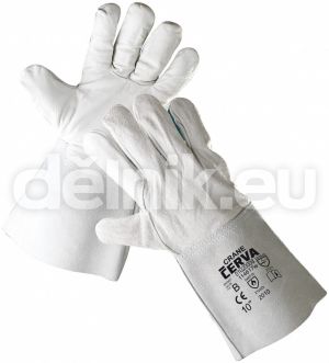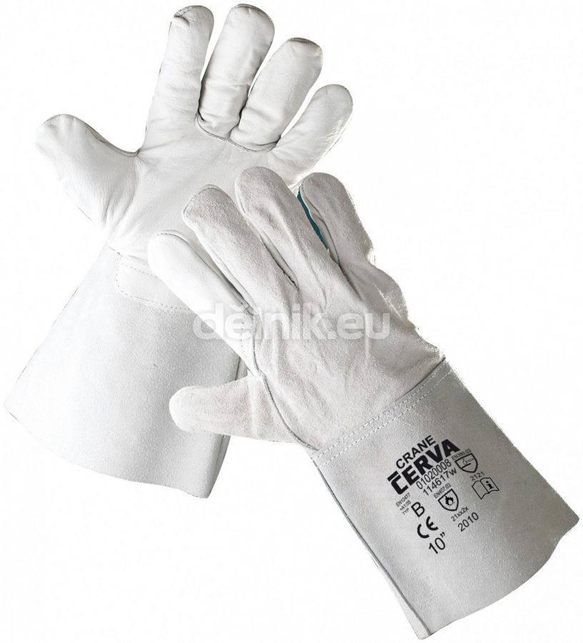 CRANE pracovní rukavice celokožené svářecí - Dlaň a prsty z lícové světlé hověziny, hřbet z šedé hovězí štípenky, tuhá manžeta 15 cm, bez podšívky, velikost 10