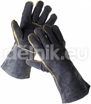 SANDPIPER pracovní rukavice celokožené svářecí - Černá hovězí štípenka, délka 35 cm, kryté švy, bavlněná podšívka – certifi kát pro svářečské práce, typ A, velikost 11