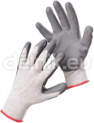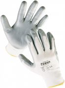 BABBLER pracovní rukavice nylonové s nitrilovou dlaňí. Bezešvý bílý nylonový úplet, dlaň a prsty povrstvené šedým mikroporézním nitrilem, pružný náplet na zápěstí, velikosti 6 -11